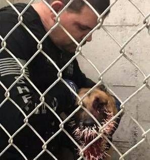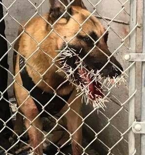 不要说流浪狗,就算是训练有素的警犬,也不是豪猪的对手。之前就有一只警犬在执勤时,被突然冲出的豪猪攻击,在反击的时候脸上扎了近200根刺。