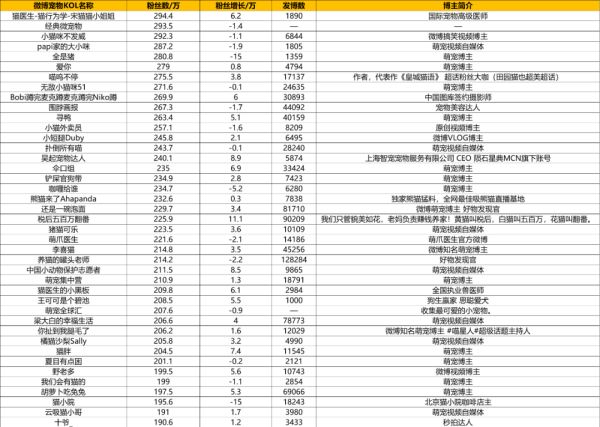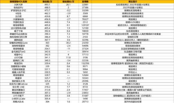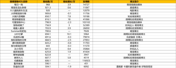 微博宠物KOL盘点:千万级达人格局未变,超三成博主粉丝下降