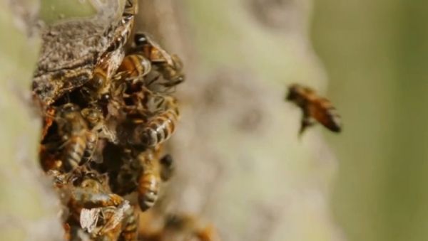 动物世界:啄木鸟放弃的废巢穴,成为了其他动物们的新家,蜜蜂就是其中之一