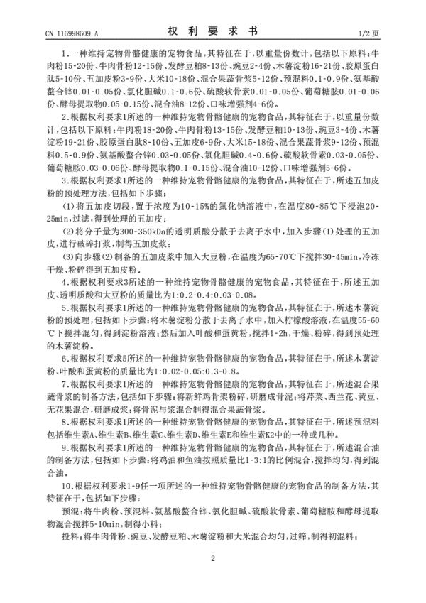一种维持宠物骨骼健康的宠物食品及其制备方法2023.pdf专利下载