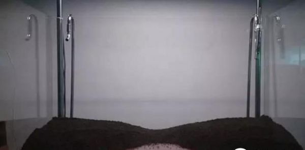 1、向超白缸内倒入水草泥,用刷子将水草泥前面刷开,留出做河道的位置。