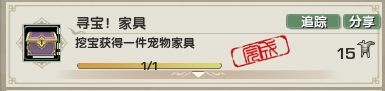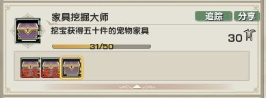 【挖宝!家具】这个是宠物出行回来携带的器物谱,去到对应的地图进行挖宝玩法,必得家具。累计50次可拿到65点资历。(管家器物令代挖不算次数哦!)