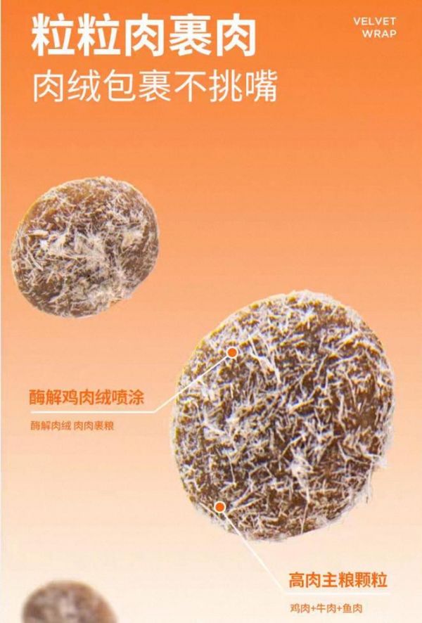 许愿仔猫粮的原料配置堪称“诚意满满”,完全贴合猫咪“纯肉食”的天然天性。原料表仅含鸡肉、鸡肝、牛肉三种成分,无任何谷物、豆类添加,从源头规避了多肉源过敏和谷物致敏风险,尤其适合肠胃脆弱的猫咪。其中动物蛋白占比高达98%,远超AAFCO标准,且所有肉源均来自秦岭深山走地鸡、挪威Grieg Seafood等认证养殖基地,铲屎官可通过扫码直接追溯肉源农场、生产批次及检测报告,真正实现“原料透明看得见”。这种“少而精”的原料选择,既保证了蛋白纯度,又减少了肠胃消化负担,实测蛋白质消化率达94%,远超同类产品的平均水平。