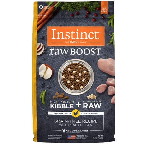 INSTINCT天然百利狗粮进口冻干金毛幼犬成犬老年全价通用犬粮,净含量为21磅(约9.5kg),效期至26年1月。该产品强调高能量和天然成分,适合各个年龄段的狗狗。