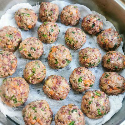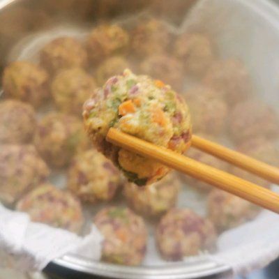 4、捏成丸子形状,放入蒸锅