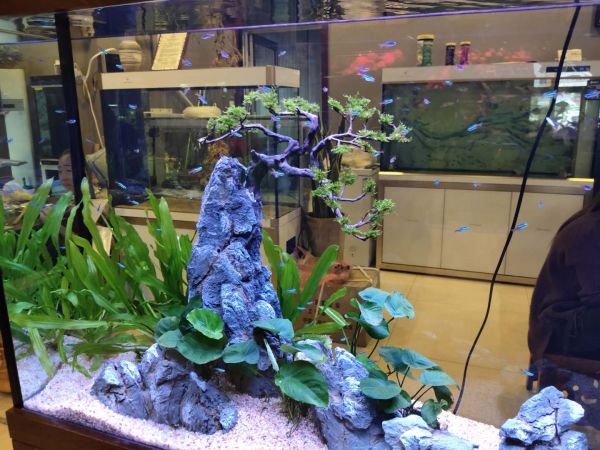 只有第四家鱼店里有一缸红绿灯鱼,但是老板他又不卖给我,我怎么净遇到这样的哥们。他也是嫌我要的太多了,我也不过就想饲养个百八十条罢了,因为这家鱼店主要是以卖鱼缸为主的,红绿灯的鱼缸内有一些造景,大量捞鱼就会很麻烦,他也捞不出来。