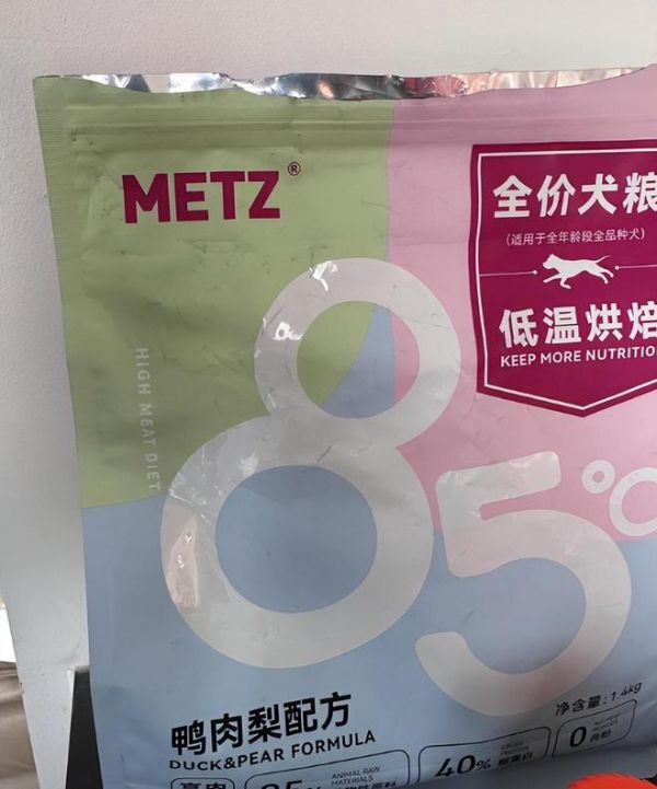 玫斯始终以宠物的真实喂养需求为核心,希望用扎实的科研实力来击破狗狗在不同生命阶段的营养挑战,打造安全、健康、全面的喂养配方,帮助狗狗实现更理想的状态。这个是玫斯的鸭肉梨配方狗粮,精选冷冻保鲜鸭肉与冷冻鸡骨肉作为优质动物蛋白来源,粗蛋白含量高达40%,粗脂肪达18%,能量密度较高,特别适合日常活动量大或处于增肌期的狗狗,如果是容易发胖或者需要控制体重的狗狗需要控制一下喂食量。配方里面特别添加了梨、野菊花等天然成分,有助于清热降火,缓解泪痕问题。颗粒用的是烘焙工艺,还结合了喷粉技术,在提升风味的同时增强适口性,让狗狗的进食体验更好。整体的营养比较均衡,是适合全年龄段狗狗食用的。