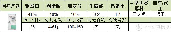 推荐理由:网上很火的牌子,背后是网易,国内代工厂生产,很多人安利,粗蛋白含量高,主要成分就是三文鱼,不是特别低敏,三文鱼有美毛效果。