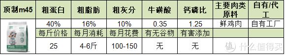 推荐理由:做狗粮起家的顶制进军猫粮行业以来也广受好评及铲屎官的喜爱。m45作为顶制的中端猫粮,性价比还是很高的,这款猫粮以鸡肉为主,营养丰富,0谷物,0诱食剂,猫咪完全不会有过敏的风险,颗粒膨化度高(有利于猫咪消化),对幼猫和老猫也很友好。