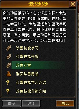 玩家可在洛阳云渺渺(182,157)处,与她对话并选择“珍兽还童”功能。