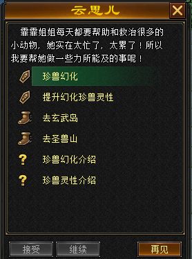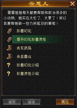 普通提升:携带“灵兽精魄”前往苏州云思儿(87,143)或楼兰云兮兮(109,121)处,选择“提升幻化珍兽灵性”即可。灵性提升失败不会回退,且资质越高,提升成功几率越高。