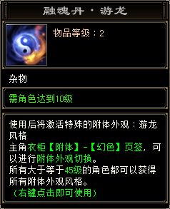 附体幻化:玩家可以在商城中购买融魂丹激活附体外观风格。在角色衣柜【附体】-【幻色】页,可以进行附体外观切换、幻色。