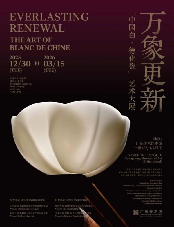 德化瓷素有“世界白瓷之母”美誉,其“白”不仅是色相之白,更是中国文化中清净、澄明、简淡等美学理想的物质化呈现。正在广东美术馆展出的德化瓷大展以“万象更新”为题,既呼应2026年新年气象,更通过德化白瓷的“传统—当代—未来”叙事脉络,展现中国文化生生不息的更新能力与开放包容的文明底色。本次展览面积达1200平方米,通过200余件(套)经典与当代作品,勾勒出德化瓷的文化谱系与时代活力。