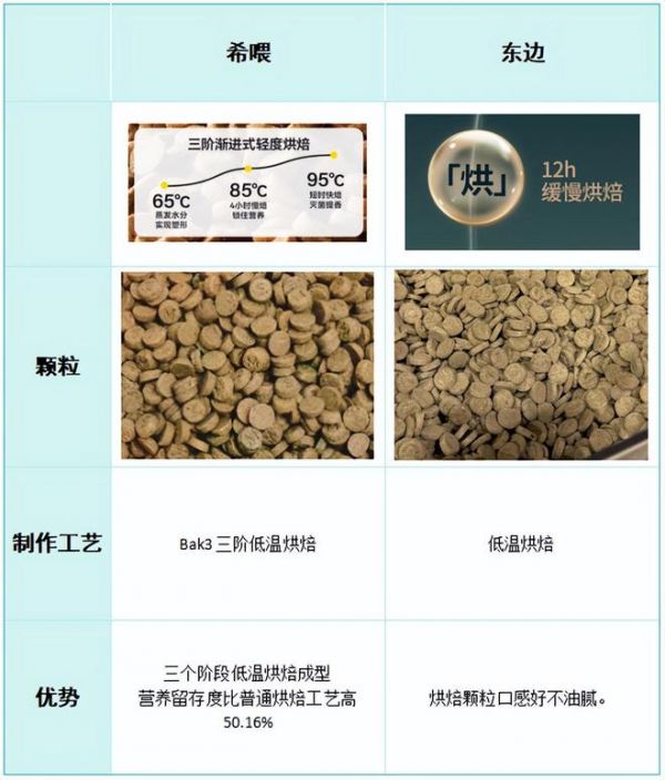 希喂:希喂烘焙狗粮的 Bak3 三阶低温烘焙工艺,是和国内头部工厂山东汉欧联合打造的独家核心工艺。依托汉欧成熟的烘焙经验与国际认证生产体系,希喂的烘焙技术可靠度也是直接拉满。