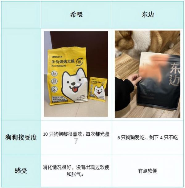 希喂:10只狗狗对希喂的接受度很高,而且刚拆袋就都被吸引过来了,后面吃希喂也没出现任何问题,10只狗狗都很喜欢吃,也不剩饭,吃了之后没有出现软便的情况,便便状态都很好,有丝兰提取物在里面,狗狗拉出来的也不臭,比以前情况好很多。