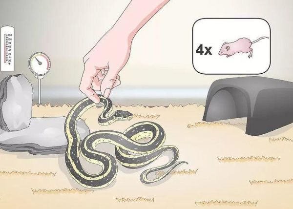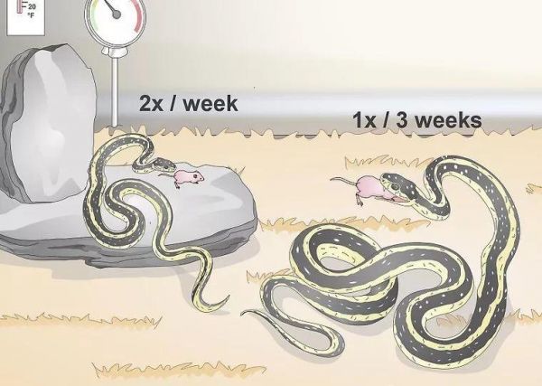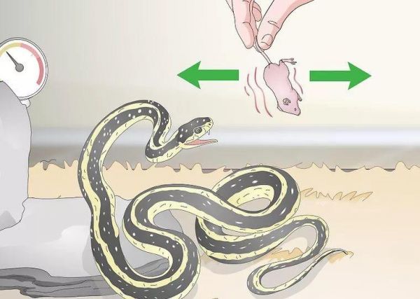 喂食。大多数宠物蛇捕食鼠类,也有个别物种食蛋类、蜗牛、蚯蚓、昆虫。除食蛋类的宠物蛇外,食物的截面积不超过蛇体最粗的地方,食物过大时可以通过肢解的方式规避。幼体一般一周饲喂1~2次,成体一般一到三周喂食一次,也可以幼体5~7天饲喂一次,成体7~10天饲喂一次。
