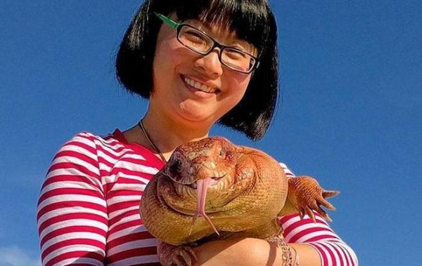 这位女孩是一名生活在美国的华人,她养了一只宠物蜥蜴,在她的照料之下,蜥蜴长得可胖了。