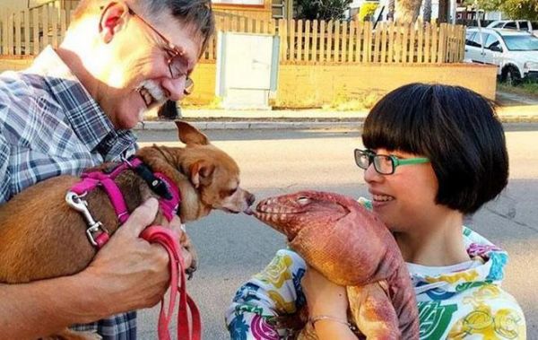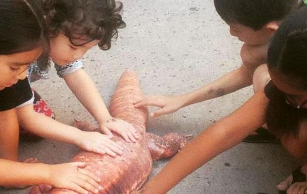 小孩子们也很喜欢这只蜥蜴,把它摸个不停。