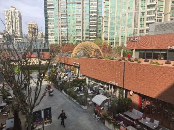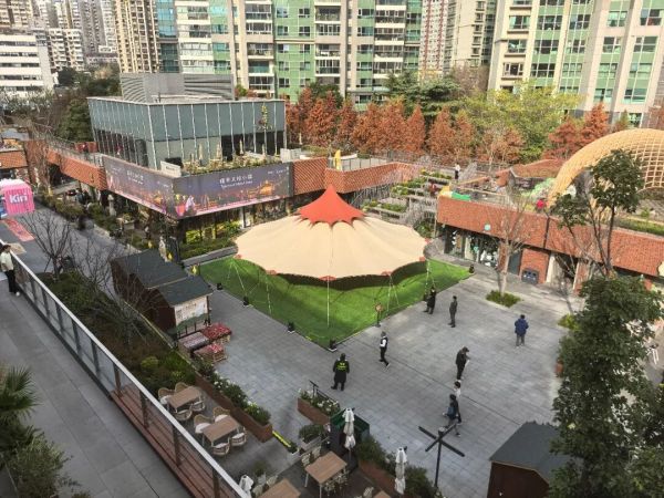 午后的阳光洒在街区步道上,不少居民推着婴儿车慢悠悠散步,还有老人坐在休憩区聊天,商圈与社区的烟火气在此自然交融。