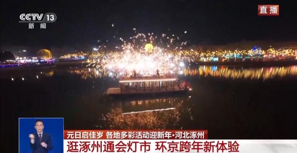 这个元旦假期,各地举行了丰富多彩的活动迎接新年。华灯初上,在河北涿州永济公园,通会灯市嘉年华热闹举行,兼具传统韵味与现代活力的特色活动,吸引大批游客在灯火交融间共迎新年。