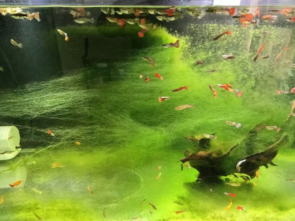 1. 爆发后影响观赏性:藻类大量繁殖会覆盖缸壁、滤材和水草叶片,让鱼缸变得浑浊邋遢,遮挡鱼儿的观赏视线。