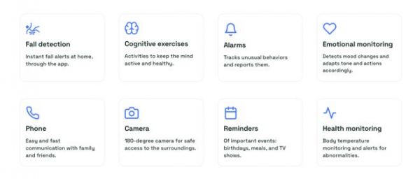 这款AI鹦鹉,配备了多个摄像头和三个无线卫星接收器,这些接收器带有音频和运动传感器,当老人起床时,Onorato会向他们问好,并让他们看着它的眼睛。设备会扫描老人,评估他们的情绪状态与身体状态,还可以进行跌倒检测与家庭异常检测,会在第一时间通知家人。