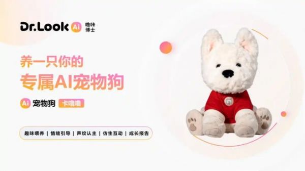 噜咔博士也在2025年推出了新品“卡噜噜”,其形态为狗+玩偶的形态,主打“可喂养的AI宠物狗”,能够实现虚拟喂养、声纹认主及情感陪伴。