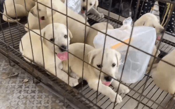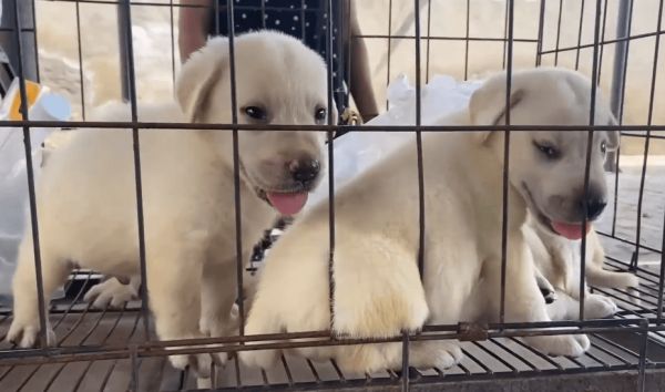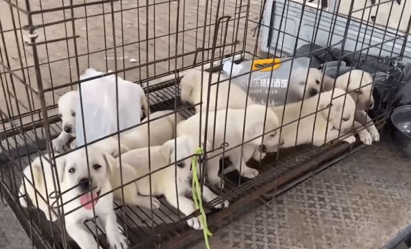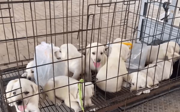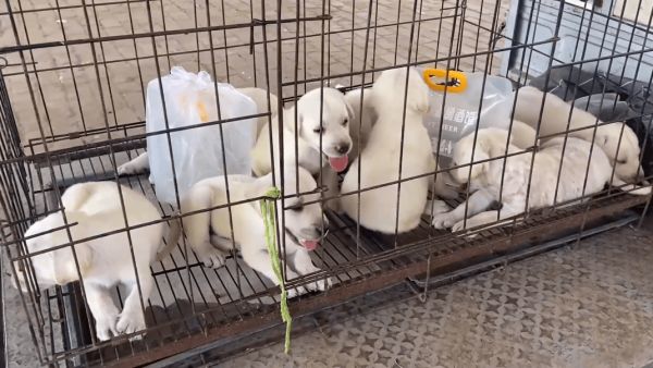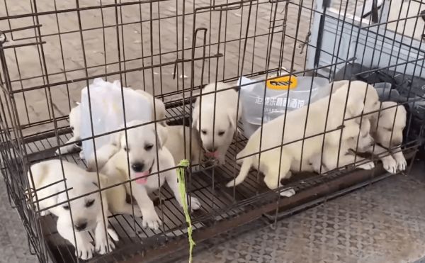 网友在空荡荡的狗市里发现了一窝拉布拉多幼犬