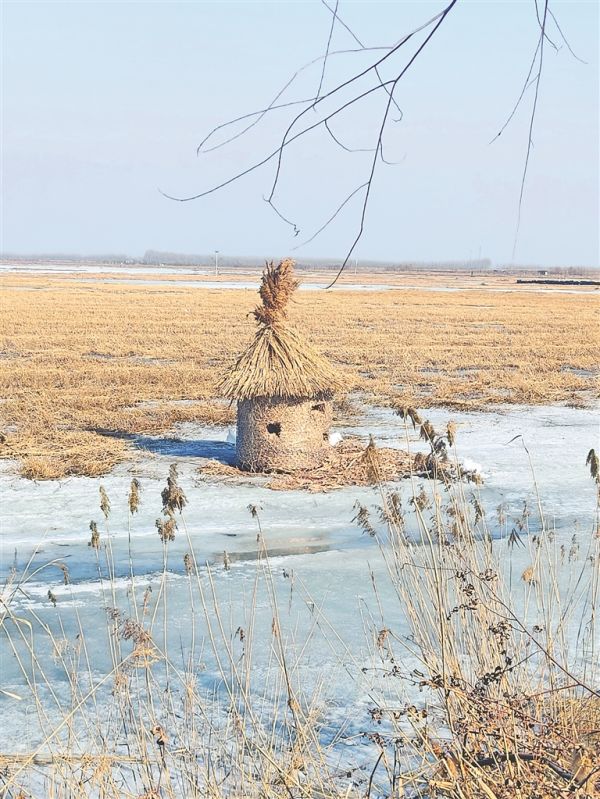 走进千鹤岛旅游风景区湿地,远远看到湿地内的冰面上,“栽种”了一个个精致的人工鸟巢,有椭圆形的,有的像粮仓,还有的像房屋,成为一道亮丽的风景线。“经过我们前期踏冰实地调研,对旅游景区的鸟类进行跟踪研判,根据鸟群的数量、体重、大小,为中小型鸟类设计安装了60个人工鸟巢、巢筐,为候鸟搭建起‘水上是巢穴,水下是餐桌’的居住环境。”孙志勇说,“人工鸟巢和巢筐以稻草编织为主,在巢的出口放置一些树枝、杂草等装饰物,模拟自然界鸟巢,吸引鸟儿‘入住’,仿真效果非常好。”