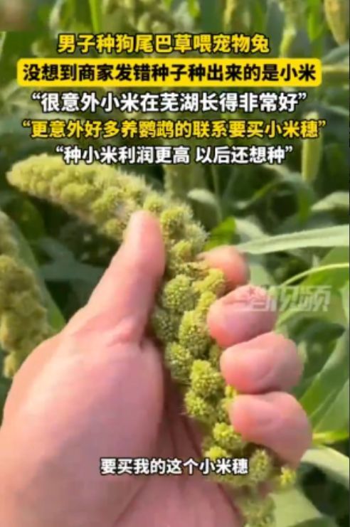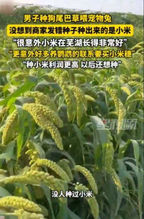 阴差阳错!安徽芜湖,男子在网上购买了“狗尾巴草”种子,本打算种了之后用来喂宠物兔子,谁知商家发错了种子,种出来后发现竟是谷子,仔细一算账发现:赚翻了!