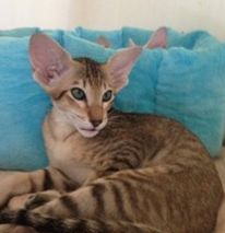 东方短毛猫是家猫的品种之一,英文名:OrientalShorthair,小型猫,体重大约在3公斤左右,四肢修长、短毛,骨骼纤细、肌肉发达,体态优雅。耳大、杏仁眼。原产新加坡,据说是暹罗猫和阿比尼西亚猫杂交后的变种,体型类似暹罗猫,眼睛多为绿色,也有琥珀色。嘴长尖,呈三角形的大耳朵,尾巴末端是带黑色的深褐色,下巴和胸部颜色较浅。前腿内侧有条纹,毛短、柔滑、油亮。幼猫出生后九星期以前眼睛颜色会改变,又因体型小,看上去被毛较长。毛色主要为带暖棕色的深褐色,但也有很多种其他颜色,其中以银蓝色的品种最为名贵。东方短毛猫活泼好动,好奇心大,喜欢攀高跳远与人嬉戏,对主人忠心耿耿。另外还喜欢撒娇,性格类似于它的祖先暹罗猫,嫉妒心强,以如果主人冷落它的话,不但会吃醋有时还会发脾气。