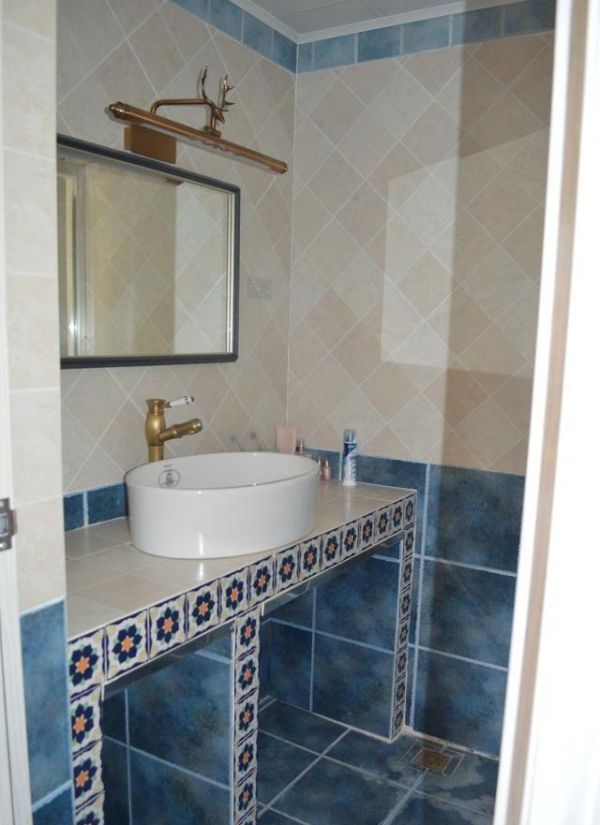 卫生间同样选择了仿古的格子砖,干湿分离的设计使用起来更加的方便,装修师傅现场制作的洗漱台面十分的实用,没有浪费一寸空间。