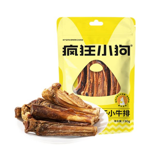 疯狂的小狗 狗零食磨牙棒耐咬牛肋骨宠物泰迪金毛大型幼犬洁齿骨头 风干小牛排【约6-12cm 肉骨可见】店长推荐