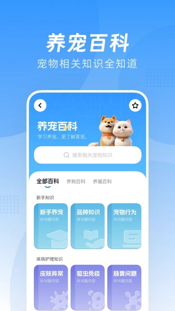 宠物百科知识: 提供丰富的宠物知识百科,包括猫咪和狗狗的品种、习性、健康小贴士等。为您提供全方位的养宠指南。