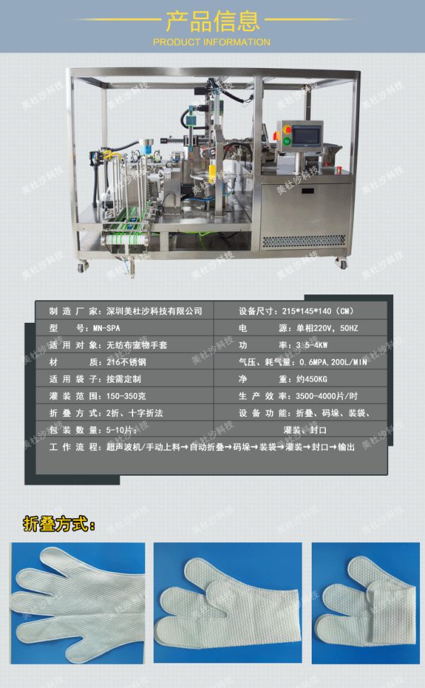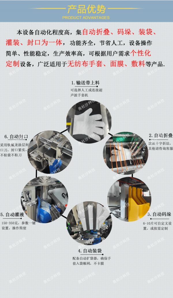 可根据客户需求定制设备功能,多常见于多片无纺布手套、手膜包装,如灌装,封口等。