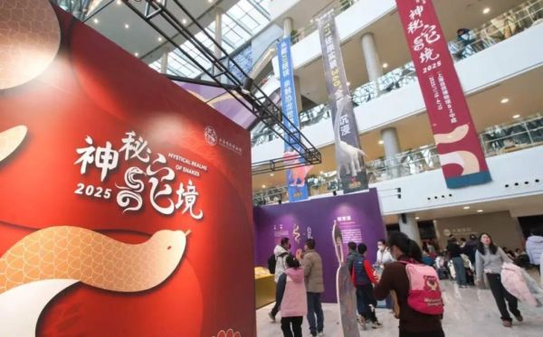 该展包括“序厅—秘境蛇踪”“蜿蜒天下”“生存智慧”“与蛇共舞”四大部分。展厅采用“S”形布局,以蜿蜒的蛇体为灵感设计动线。值得关注的是,整个展览模拟蛇类栖息地的场景设计,辅以音效与灯光效果,为观众营造出身临其境的探索体验。