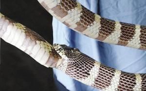 英一宠物蛇成“贪吃蛇” 误吞自己尾巴却被倒齿卡住