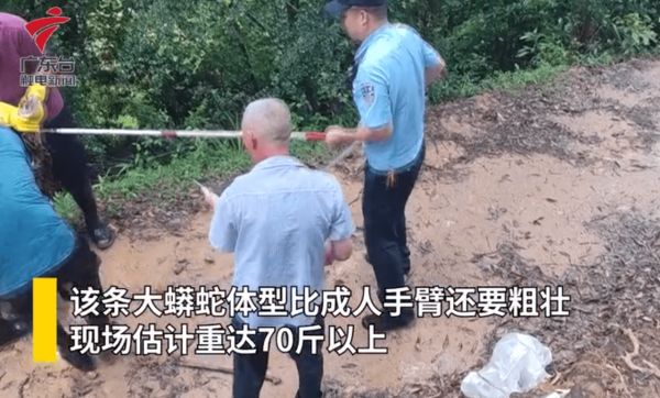 70多斤蟒蛇现身广东梅州,5人合力将其抓捕