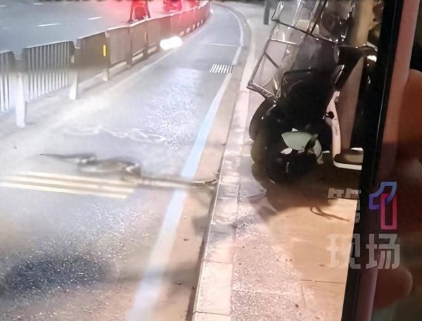 那一晚的路口,车灯一束束扫过,行人加快脚步,谁也没想到会看到一条大蟒从隔离带往外探