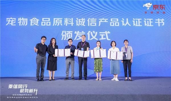 在原料诚信认证方面,京东超市联合第三方认证机构北京华思联认证中心,打造行业首个“宠物食品原料诚信产品”认证标准,并对符合原料安全、用料真实、配方诚信、监督负责的宠物食品产品,授予原料诚信产品认证证书。