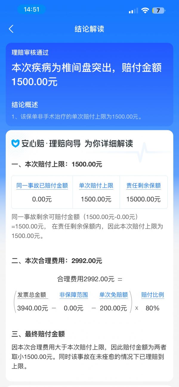 养宠人士的理赔情况截图 受访者供图