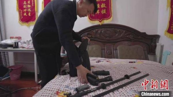 刘伟正在整理寻找宠物的器材 受访者供图