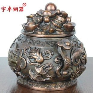 宇卓铜器纯铜聚宝盆开盖工艺品黄铜装饰摆件