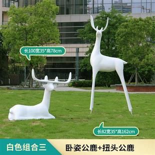 户外仿真抽象玻璃钢动物白鹿雕塑售楼部园林景观草坪装饰品装饰摆件