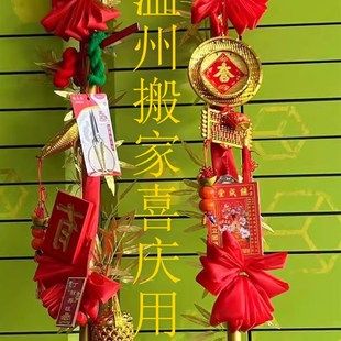 温州搬家习俗黄金新房乔迁红花竹入红绸十全十美新居仪式装饰摆件