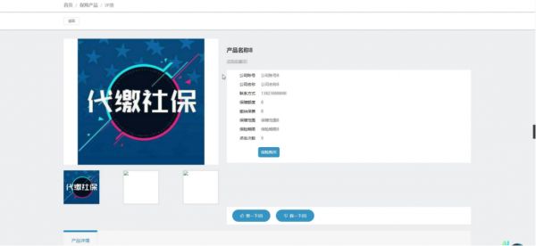 保险产品:名称、图片、保障额度、缴纳保费、保障范围、保险期限、详情、审核、点赞、踩、收藏、点击、评论