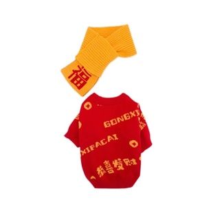 新春恭喜发财狗狗衣服秋冬季保暖过年围巾毛衣猫咪拜年服饰狗宠物服装