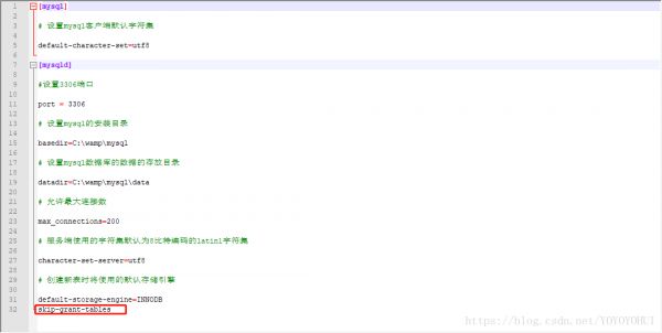 接下来就是配置MySQL了,打开进入到D:/wamp/mysql目录下新建my.ini配置文件,贴入一下内容