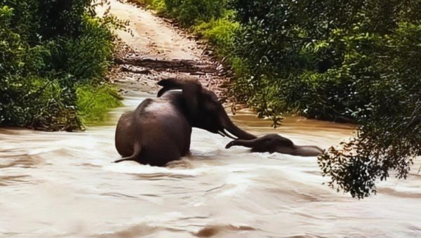南非克鲁格国家公园母象洪水中救娃,它为何能在湍急的洪流中精准施救?