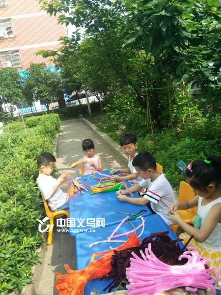 中国义乌网6月17日讯(通讯员 方笑娟)今年义乌国贸幼儿园开辟了“开心农场”,课余大家在一起播种、浇水、施肥,看着花果蔬菜慢慢长大特别的开心。每天去农场看着蝴蝶飞,看着小鸟停在树梢唱歌,别提有多兴奋,于是一场“我给小鸟一个温馨的家”的总动员开始了。老师和小朋友一起去找来扭扭棒、柳条……